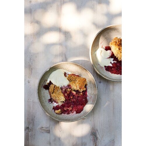 A simple classic and our favourite dessert of all time! Baked blackberries and apples with a buttery crumble topping.